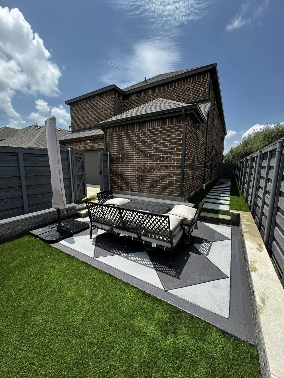 Turf Quality & Type: Higher-quality, realistic artificial turf with better drainage, UV protection, and durability costs more upfront but performs better in Texas sun and heat.